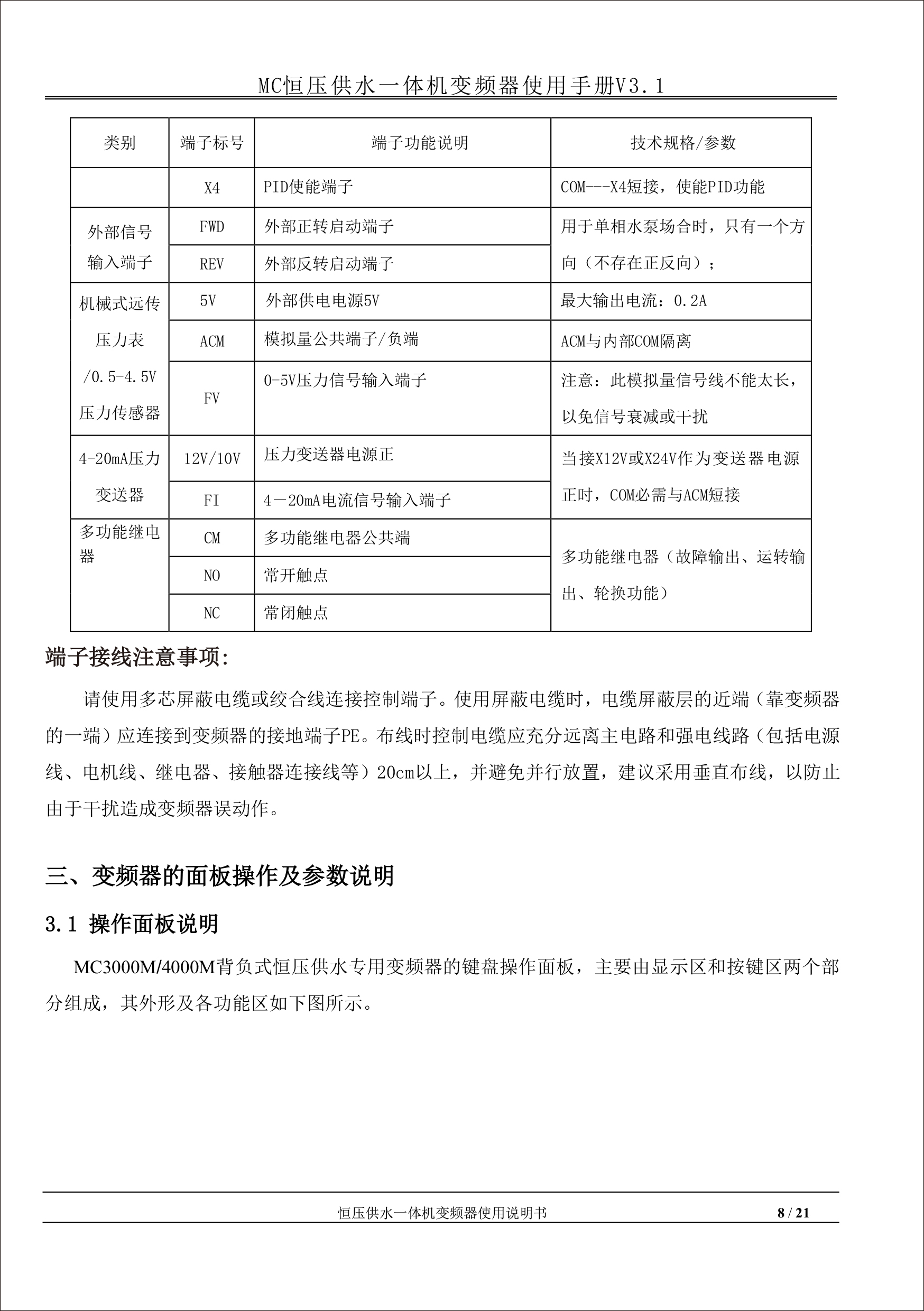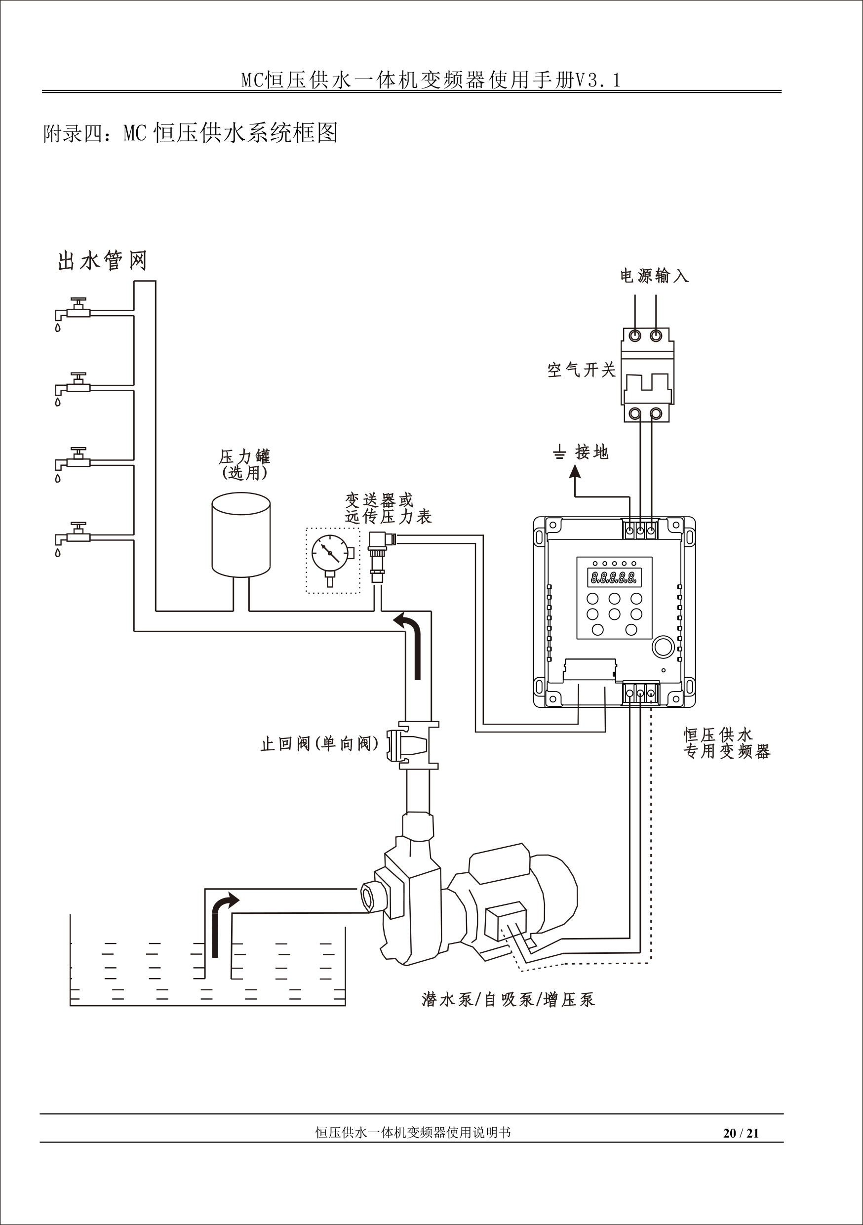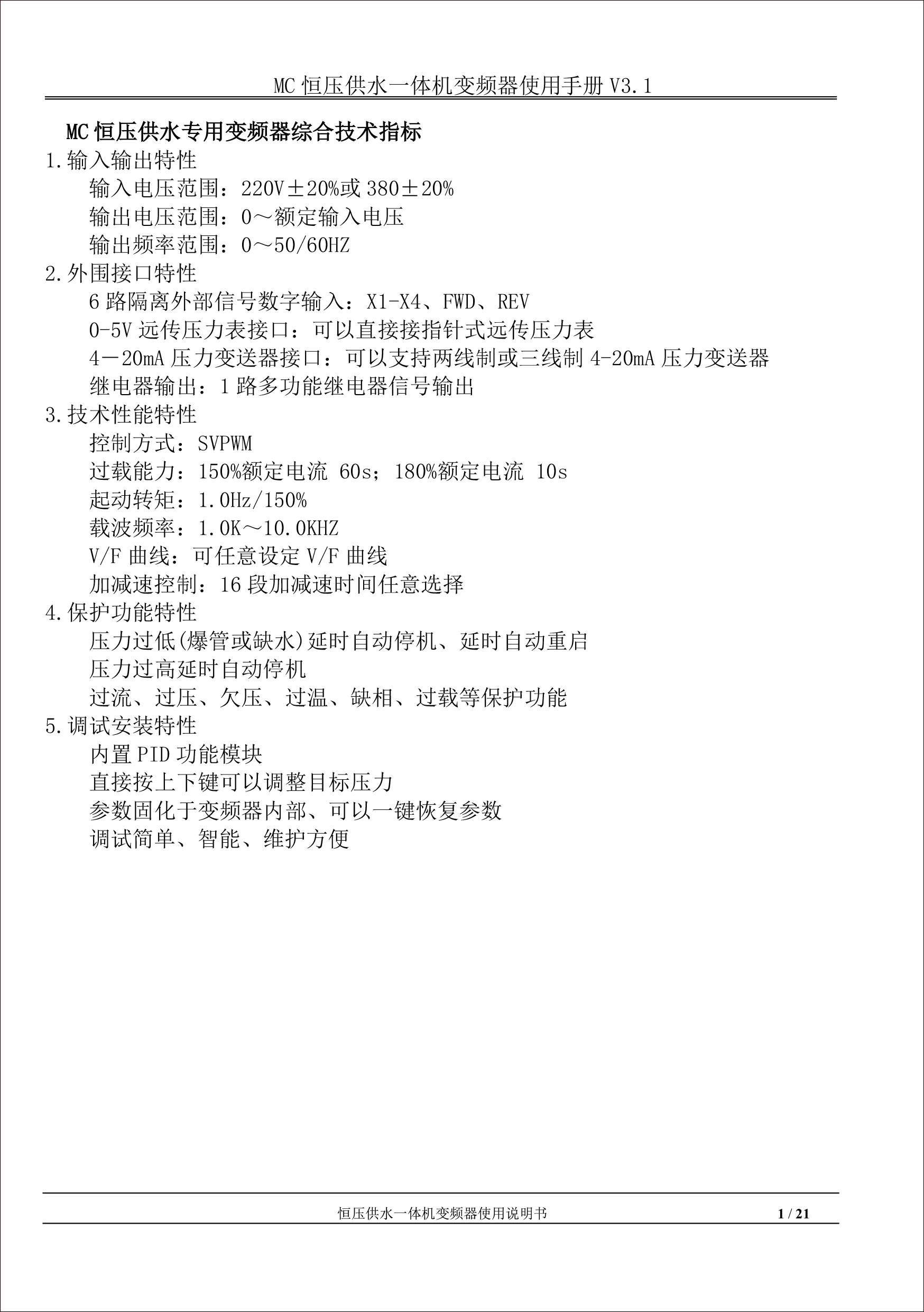 MC恒壓供水一體機(jī)變頻器使用手冊(cè)V31-181205