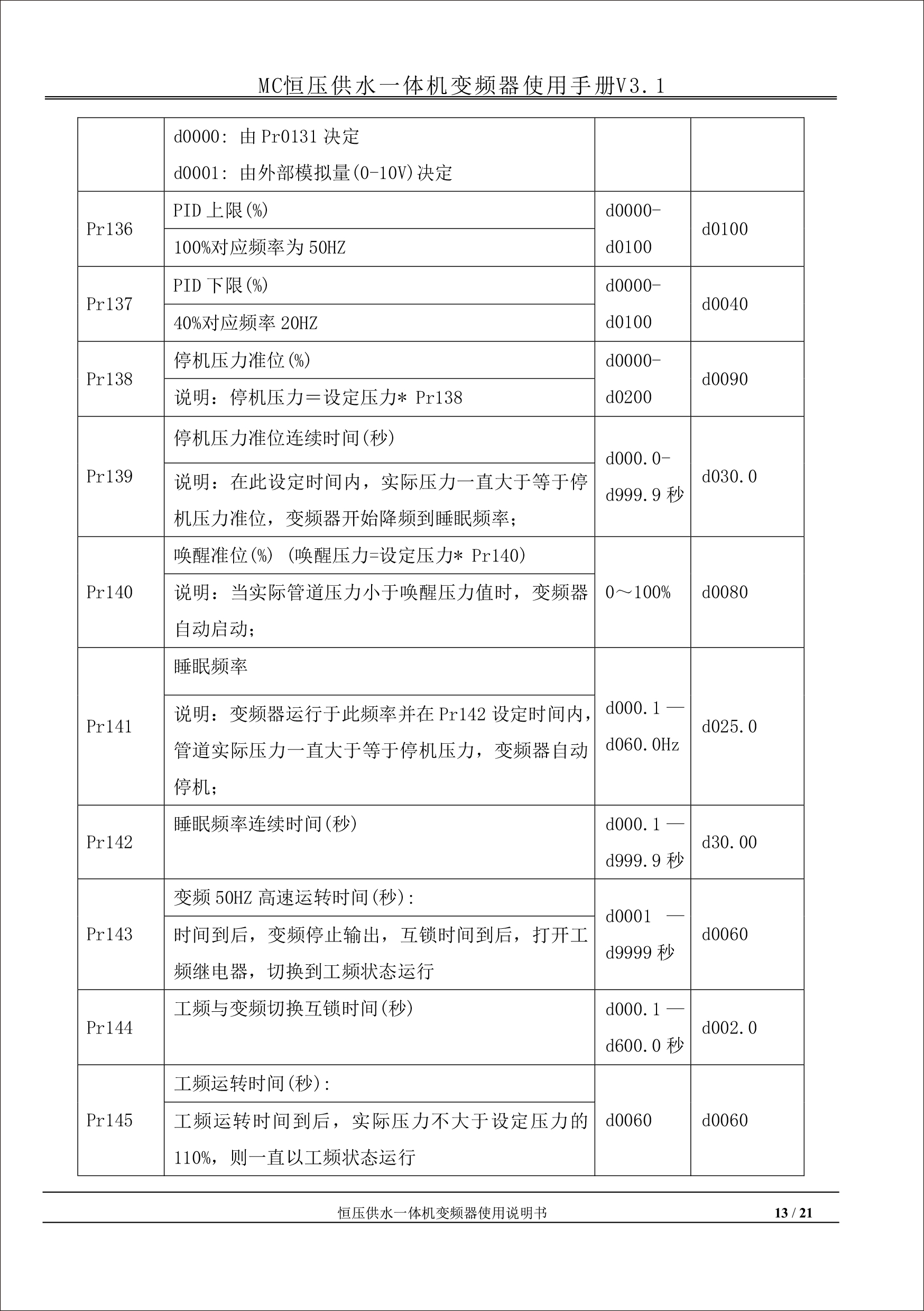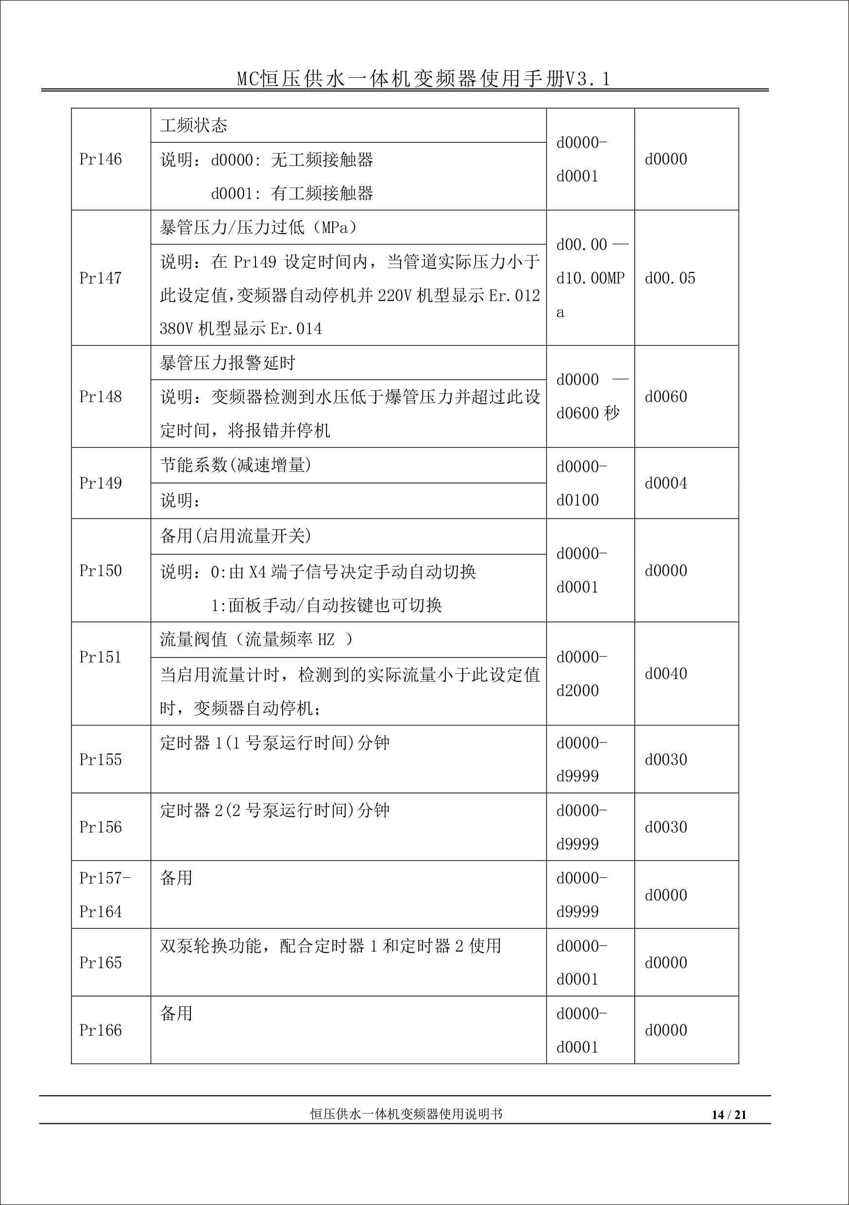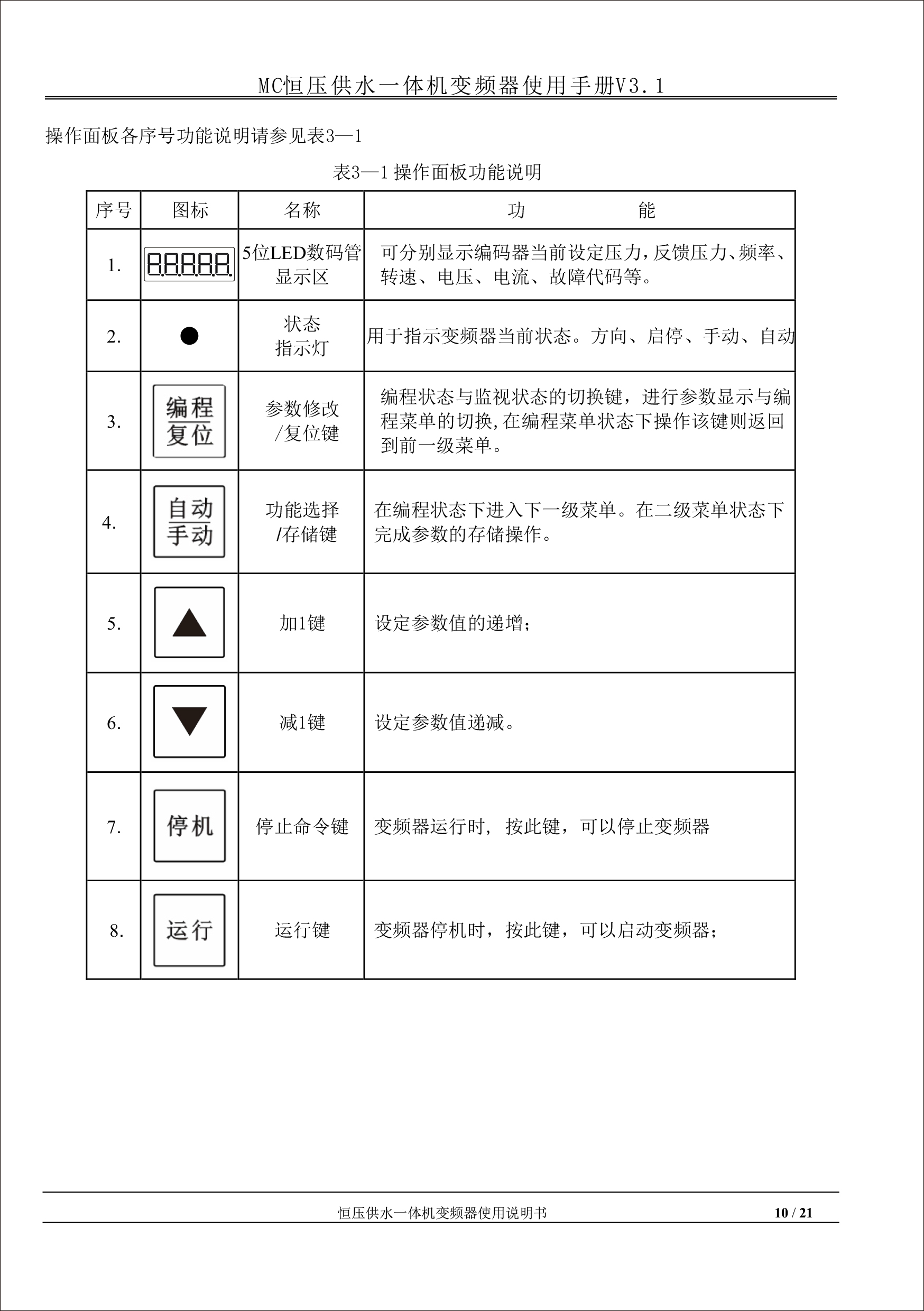 MC恒壓供水一體機(jī)變頻器使用手冊(cè)V31-181205